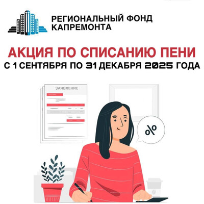 С 1 сентября по 31 декабря 2025 года УНО «Региональный фонд капремонта» проводит акцию по списанию пени.